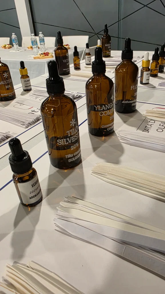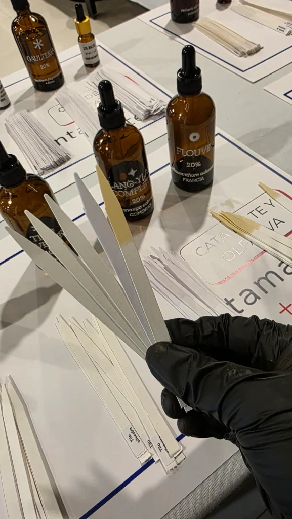 La sesión fue conducida por una sommelier de té y un perfumista natural, quienes acompañaron a los asistentes en un recorrido de cuatro tiempos, cada uno dedicado a un estilo de té: blanco, verde, negro y pu-erh. Cada infusión fue acompañada por cinco aromáticos naturales y aromaquímicos, seleccionados con precisión para resaltar, expandir o contrastar sus notas predominantes.
