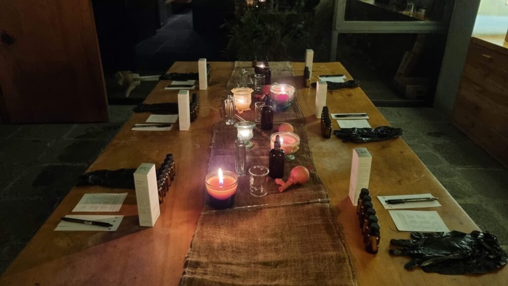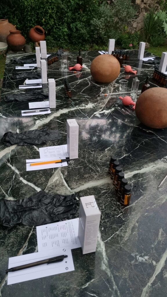 La jornada comenzó con una masterclass de perfumería natural, donde las asistentes aprendieron los fundamentos de la creación de fragancias, exploraron más de 30 materias primas nobles y descubrieron cómo se estructura una fórmula a través de notas, contrastes y emociones.